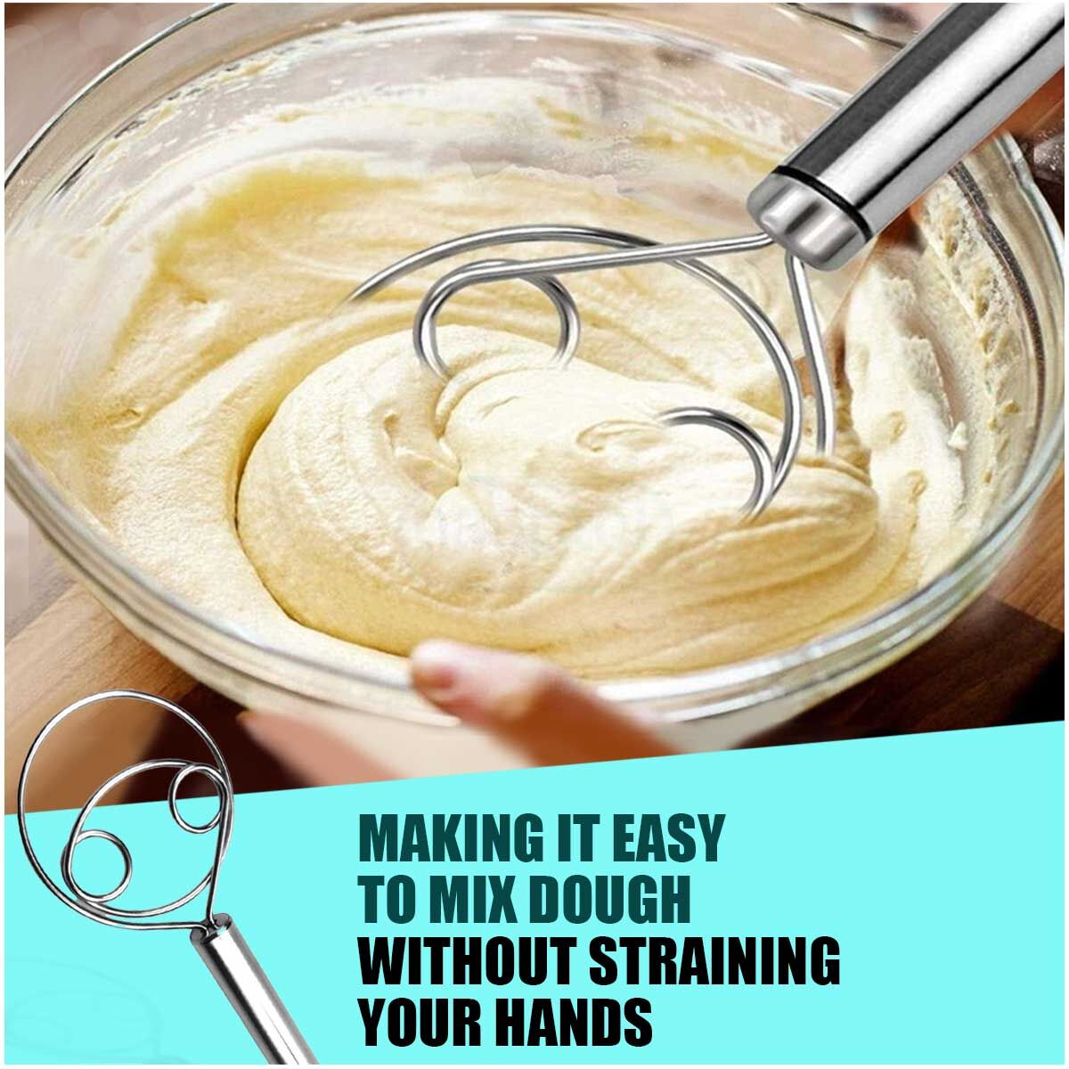 MIX WITH EASE - Multi Functional Stainless Steel Dough Mixer & Egg Beater (DM1)